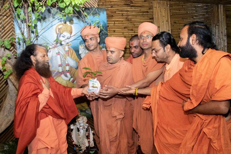 स्वामी चिदानन्द सरस्वती जी ने युवा संतों को रूद्राक्ष का पौधा भेंट कर ’मेरी माटी-मेरा देश’, माटी को नमन-वीरों का वंदन अभियान से जुड़ने का आह्वान करते हुये कहा कि भारत के 77 वें स्वतंत्रता दिवस को और गौरवान्वित करने के लिये माननीय प्रधानमंत्री श्री नरेन्द्र मोदी जी के नेतृत्व में चलाये जा रहे राष्ट्रव्यापी ‘जन भागीदारी’ पहल हेतु सभी मिलकर योगदान प्रदान करे। इस अभियान के तहत देश के अलग-अलग हिस्सों से मिट्टी को 7500 कलशों में इकट्ठा कर इस मिट्टी का उपयोग दिल्ली में कर्तव्य पथ के निकट “अमृत वाटिका” नामक उद्यान बनाने में किया जाएगा। 75 वां आजादी का अमृत महोत्सव कार्यक्रम के समापन अवसर पर हम सभी आध्यात्मिक संगठन 75 पौधों का रोपण कर वसुधा वंदन-अमृत वाटिका अभियान को सफल बनाने हेतु योगदान प्रदान करें। यह एक सुअवसर है जब हम अपनी धरती; अपनी मातृभूमि के प्रति अपने कर्तव्यों को निभा सकते हैं।
