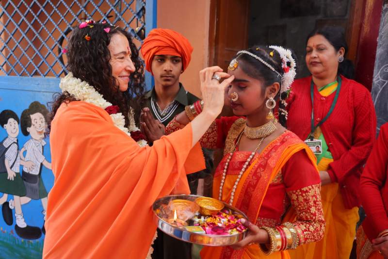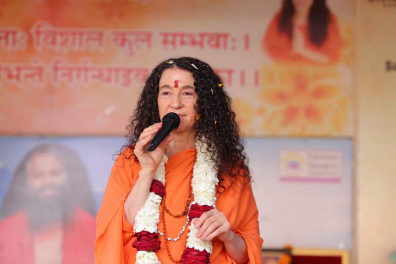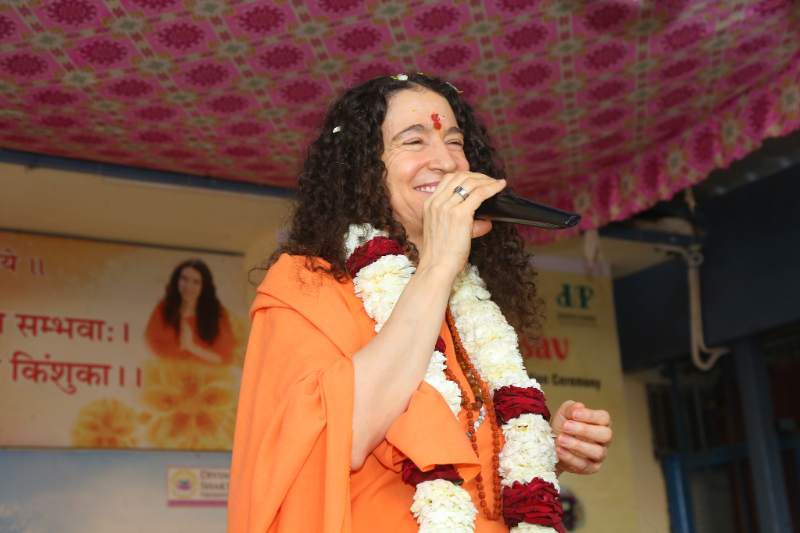 HH Pujya Swamiji and Pujya Sadhviji gave inspirational speeches to the students, encouraging and inspiring them to open, blossom, bloom and grow like the flowers in springtime, sharing their unique fragrance and gifts with the world.