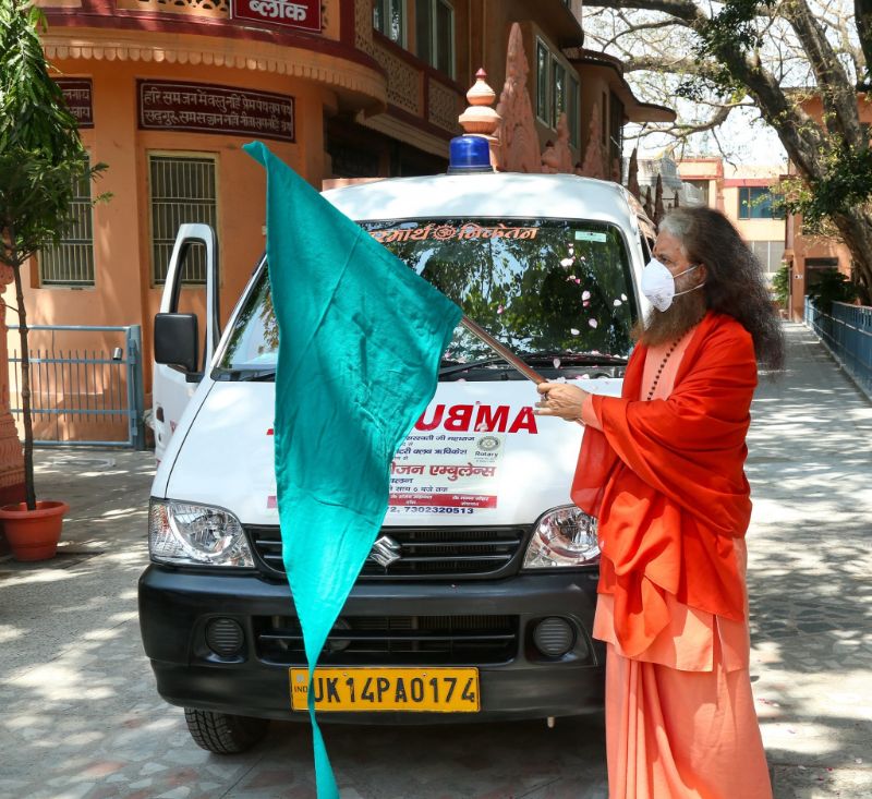Beginning today, with the blessings of Pujya Swamiji, a Parmarth Niketan ambulance, tagged with UK 14 PA 0174, will begin delivering supplies of free oxygen cylinders directly to patients’ homes through the auspices of Parmarth Niketan, the Divine Shakti Foundation and the Rotary CLUB Rishikesh. The service responds to the most critical need facing the country at this time – the need for oxygen to keep Covid patients alive!