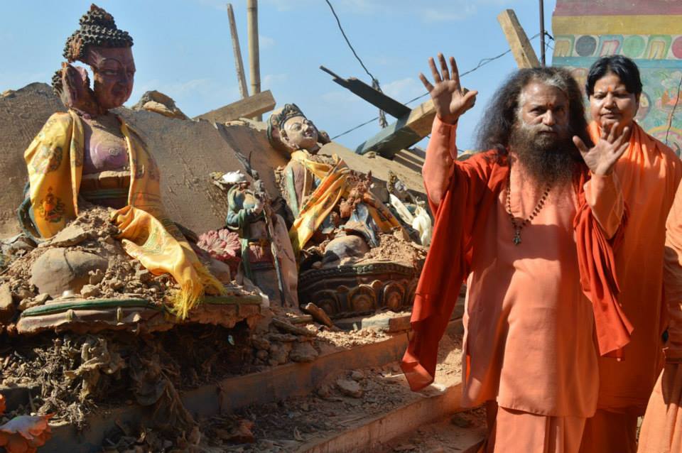 Today on the auspicious occasion of Buddha Purnima, Pujya Swami Chidanand Saraswatiji, President of Parmarth Niketan (Rishikesh), Inspiration behind Project Hope, Founder of Ganga Action Parivar and Co-founder/Chairman of Global Interfaith WASH Alliance, inspired an earthquake affected village of Lamas, nestled in the mountains of Nepal, to come together and rebuild their ancient and beautiful Buddha Temple. Like many of the houses in the Saanga Village, their sacred shrine remains shattered with the ancient and beautiful idol of Lord Buddha, other deities, ancient scriptures and texts lying tattered and scattered amongst the rubble.