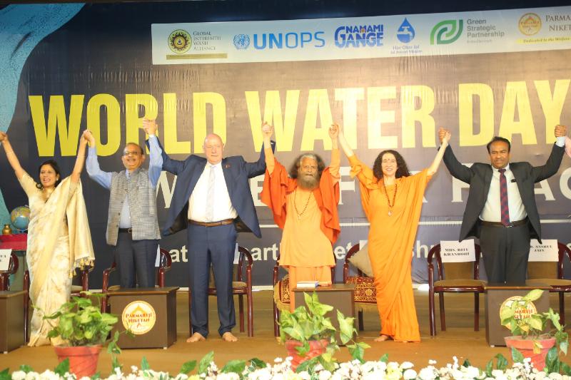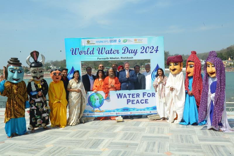 The serene banks of the sacred River Ganga witnessed a momentous gathering of global leaders, esteemed dignitaries, and passionate advocates for water conservation and peace during the celebration of World Water Day at the Parmarth Niketan, Rishikesh.