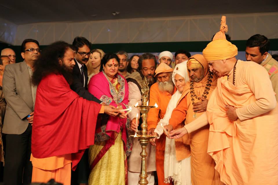 In the evening there was a special “Welcoming/Inauguration Ceremony” for all the delegates. Sadhvi Bhagawati Saraswati gave the official welcome and there were beautiful remarks by Deepika Mehta of Mumbai, Gabriela Bozic of Germany, Yogi Cameron, Laura Plumb all of whom shared what a great gift and blessing it is to come “home” to Parmarth Niketan and take part in this special one-of-a-kind festival. The inauguration ceremony also had an impressive, breath-stopping yoga demonstration by the rishikumars of the Parmarth Gurukul and special blessings by Pujya Sri Shankaracharyaji Swami Divyanand Teerthji, Pujya Swami Chidanand Saraswatiji, Shri Mooji and Shantimayi.