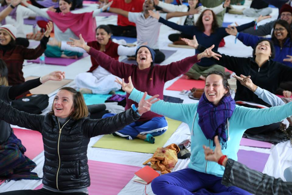 Short talks were given by some of the yogacharyas, namely Laura Plumb of San Diego, USA, Gabriela Bozic of Germany, Deepika Mehta of Mumbai and Tommy Rosen of Los Angeles, USA. Each of them expressed their great joy to be here. As Tommy said, “We are so honored and joyous to be here at Parmarth Niketan in the beautiful, divine area. This place, this area has a special gift which not only helps us learn yoga but also heals. This land is a healing land.” Deepika Mehta, the yoga teacher to the Bollywood stars explained that: “Coming back to Parmarth is coming home for me. It is such an honor to be here. I teach all over the world, but my heart is here.”
