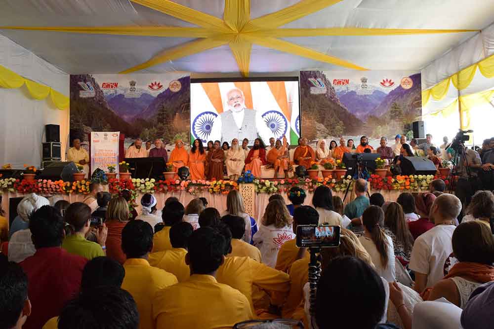 RISHIKESH – People from almost 100 countries were held in rapt attention as Hon’ble Shri Narendra Modiji delivered a stirring address at Parmarth Niketan’s renowned annual International Yoga Festival, in cooperation with the Government of India AYUSH Ministry and Uttarakhand Tourism.