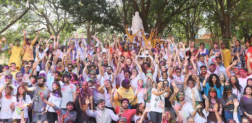 Holi Played with Yogis from Over 100 Nations & Renowned Percussionist Sivamani on Second Day of International Yoga Festival
