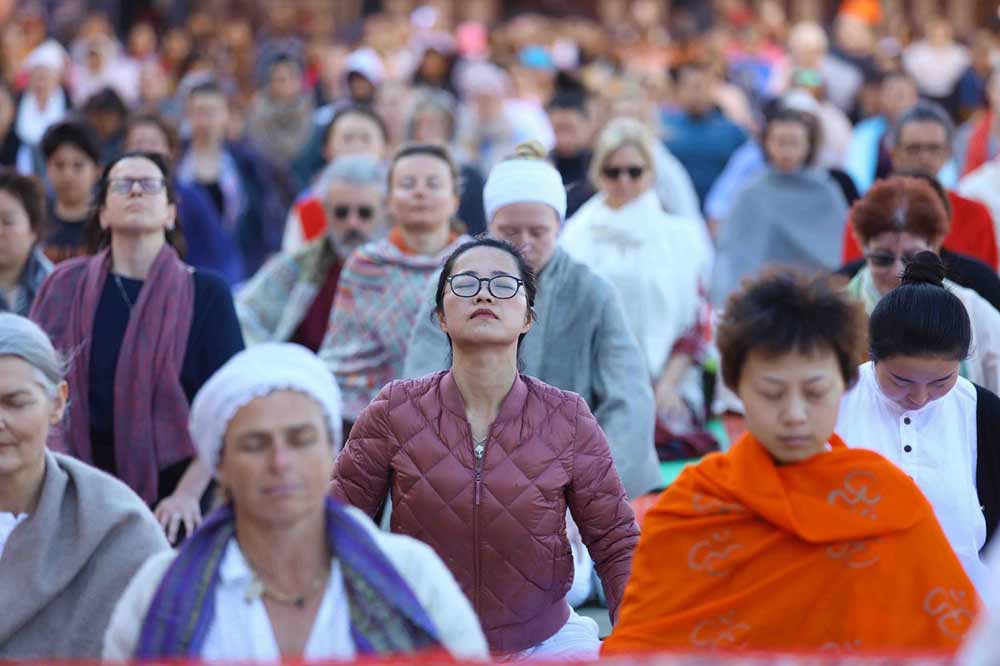 Prior to the rousing speeches, a special ceremony was held in which the Yogacharyas and Country Ambassadors were given a “Tree of Yoga”, followed by a divine Water Blessing Ceremony. After this, the Yogis from across the world took part in a Yoga in Action Pledge, raising their hands in unity to help make the planet Clean, Green & Serene for all beings.