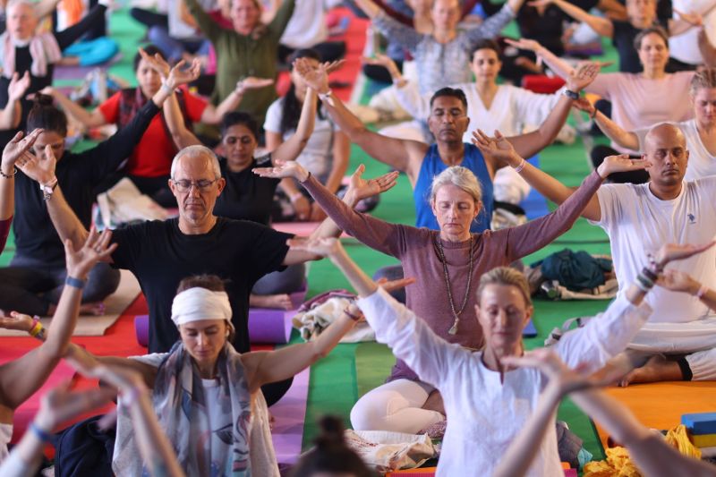 At the break of the Dawn, the participants geared up for the Day 4 of the International Yoga Festival with a packed schedule of Meditation, yoga and divine music.