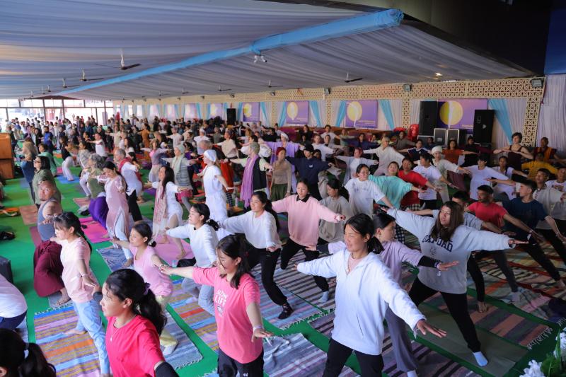 At the break of the Dawn, the participants geared up for the Day 4 of the International Yoga Festival with a packed schedule of Meditation, yoga and divine music.