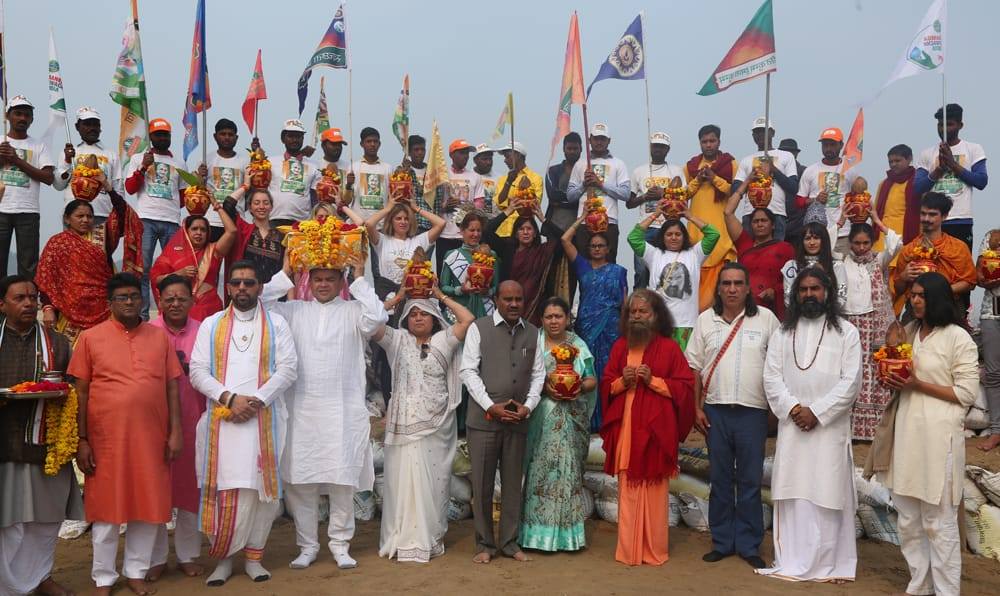 Pujya Swamiji said: “Here on the banks of the Sangam of Yamuna and Ganga and Saraswati, let us pledge together to protect our water, in order to protect our future. It’s so wonderful to have our saints and people from so many parts of the world coming together to be of service to this cause of protecting our rivers. Without water, there is no Sangam, there is no Prayag.”