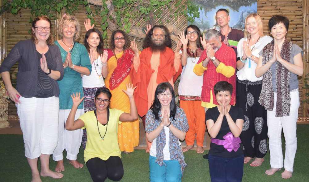 The course included Chakradance with mudra, beej mantra [seed sound] meditations and mandala art. Chakra specific yogasana session was taught by Yogacharya Dr Indu Sharma. Chakra specific sound healing was taught by Sanjay Hall. Regular Ganga Aarti and Satsang took place every evening with Pujya Swamiji and Sadhvi Bhagawati Saraswatiji, when they were in residence. The course had 14 students from 8 countries, including Australia, China, Germany, Italy, Poland, UK, USA and India.