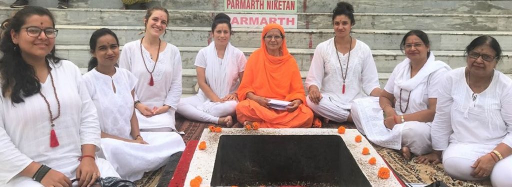 The Foundation Yoga course focuses on the rudiments of Hatha Yoga – particularly the Surya Namaskar and basic asana practice – as well as Indian culture and festivals, including pujas such as the Havan that is practiced at the world-famous Ganga Aarti along the banks of holy Maa Ganga. It also delves into the philosophies and practices of Vedic chanting and introduces students to both Karma and Bhakti Yoga from their origins in the Bhagavad Gita and Patanjali’s Yoga Sutras.