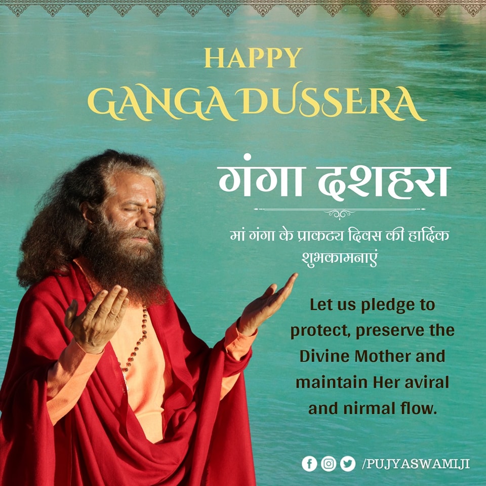 Wishing a blissful Ganga Dussehra filled with divine blessings and spiritual growth. On the auspicious occasion of Ganga Dussehra the divine grace of Mother Ganga flow through your life, washing away all impurities and bestowing you with divine blessings and the holy waters of the River Ganga purify your mind, body, and soul, and bring forth spiritual growth and enlightenment.