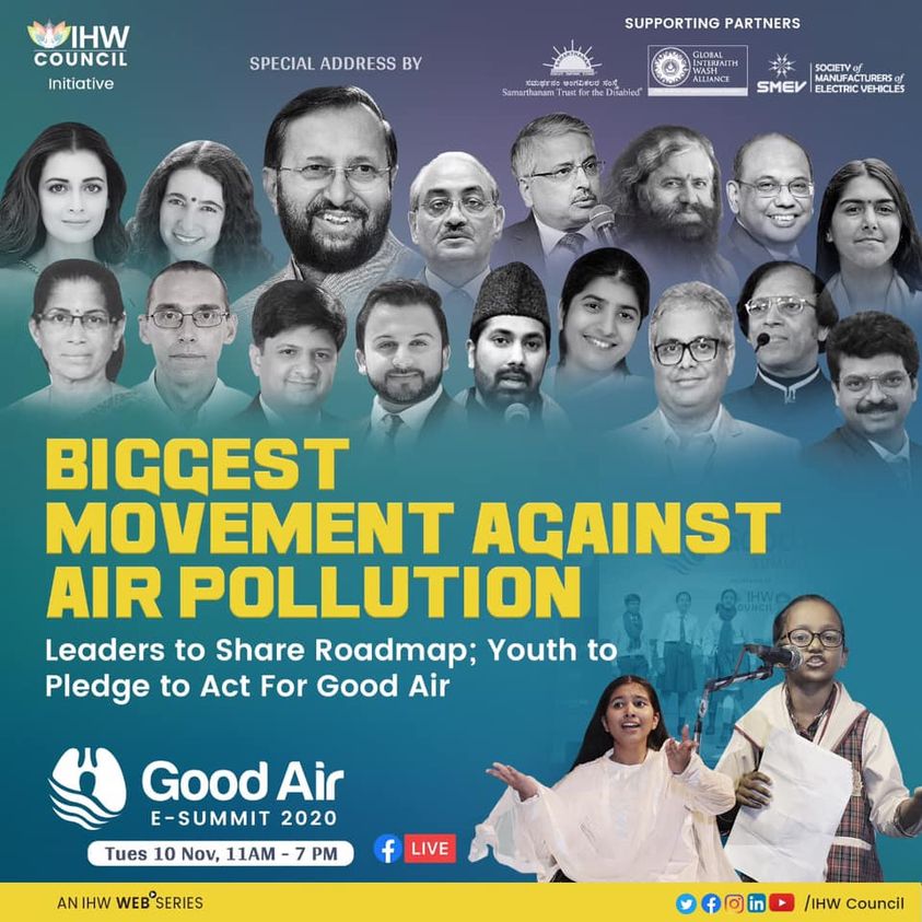 10 November 2020, Webinar: As news programs continue to offer constant coverage of the ongoing degradation of India’s air – Bharat ranks as the second most-polluted country behind Bangladesh – the Integrated Health & Wellbeing (IHW) Council in collaboration with the Global Interfaith WASH Alliance and Parmarth Niketan brought together some of the Nation’s most-important and -influential industrial, corporate, government and interfaith leaders for a vital discussion about what needs to be done to reduce the causes and affects of air pollution.