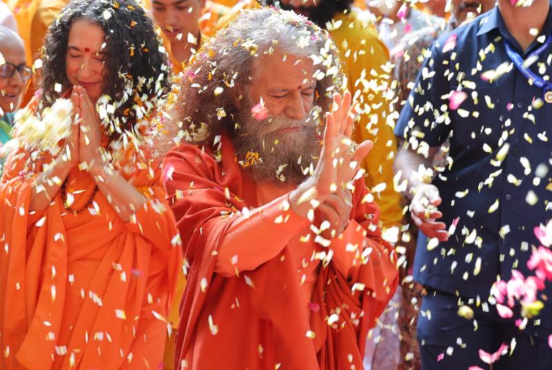 The holy presence of many revered saints graced the event, including M.M. Swami Asanganand Saraswati Ji, Yoga Rishi Swami Ramdev Ji, Acharya M.M. Swami Avdheshanand Giri Ji, Gita Manishi Swami Gyananand Ji, M.M. Swami Harichetananand Ji, Sant Shri Murlidhar Ji, Dr. Sadhvi Bhagawati Saraswati Ji, Swami Dayaram Das Ji, Swami Jayantanand Saraswati Ji, Shri Ajay Bhai Ji, Sadhvi Abha Saraswati Ji, Swami Ravi Prapanchacharya Ji, Swami Krishnacharya Ji, Swami Keshavanand Ji, Swami Sanatan Tirth Ji, and Swami Gangeshwaranand Ji.