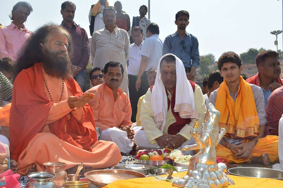 During both beautiful ceremonies, He inspired the local priests to join their hands and their hearts to the cause of restoring and reviving our sacred rivers, protecting Mother Nature and making the Kumbha Mela a Clean, Green and Serene one.