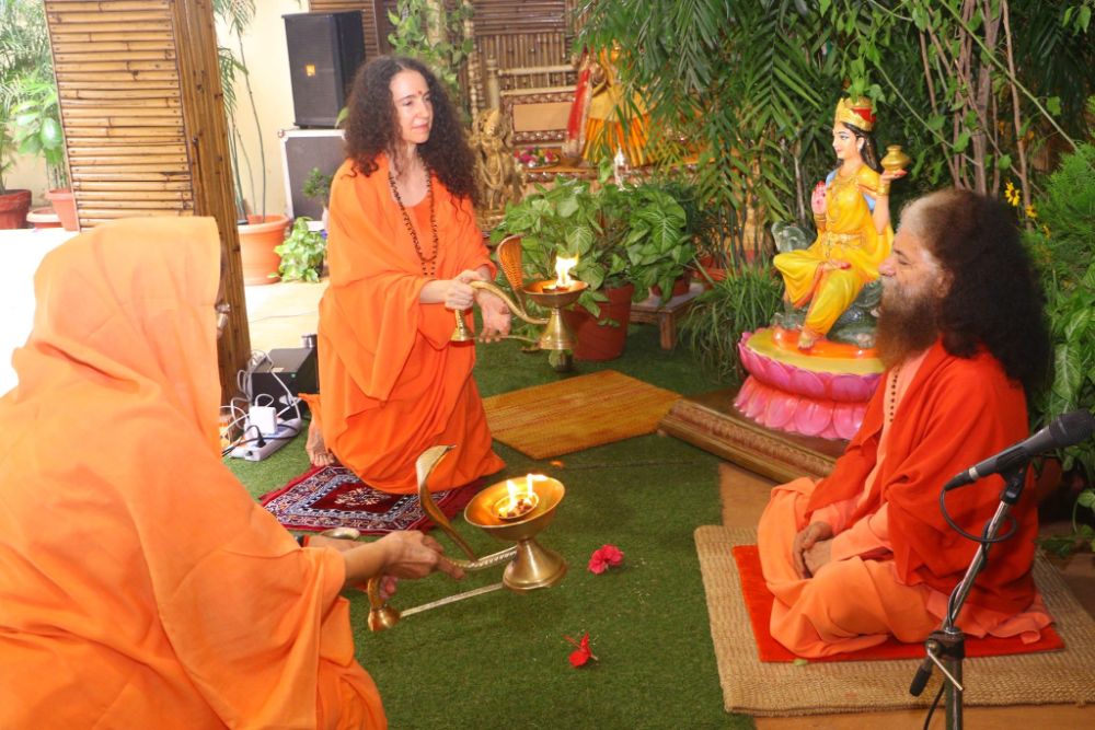 We began this sacred day honouring the Guru Parampara with a special tribute to Pujya MM Swami Shukdevanandji Maharaj and with the divine Darshan of Pujya Swami Chidanand Saraswatiji. We then had a beautiful Guru Poojan, a discourse on the Light of the Guru by Pujya Sadhvi Bhagawati Saraswatiji and bhakti-filled Guru bhajans and mantras by Pujya Sadhvi Abha Saraswatiji and Shri Dilip Chetrryji.