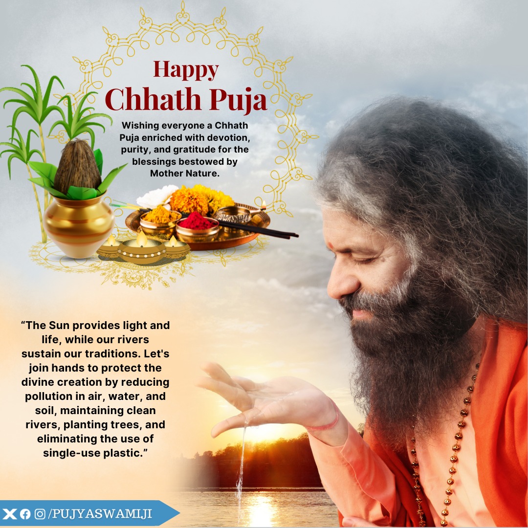 The Sun provides light and life, while our rivers sustain our traditions. Let’s join hands to protect the divine creation by reducing pollution in air, water, and soil, maintaining clean rivers, planting trees, and eliminating the use of single-use plastic.
