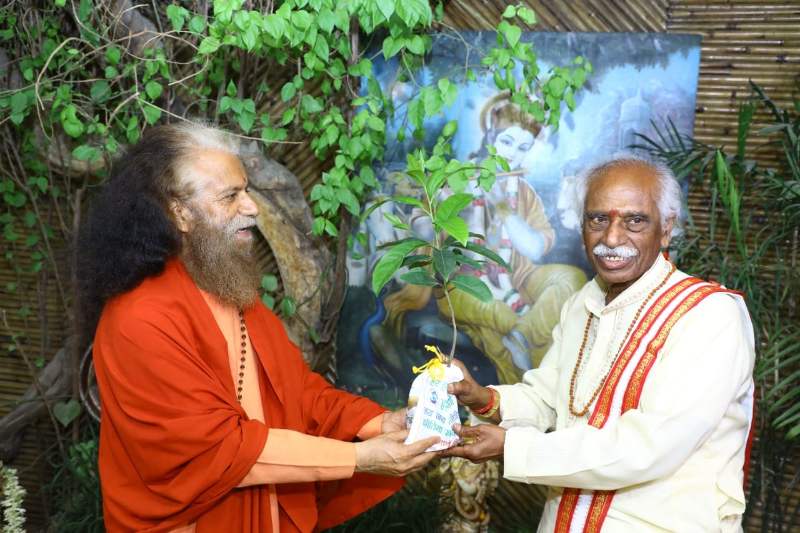 Swami Chidanand Saraswati ji felicitated the Honorable Governor by giving a plant of Rudraksh