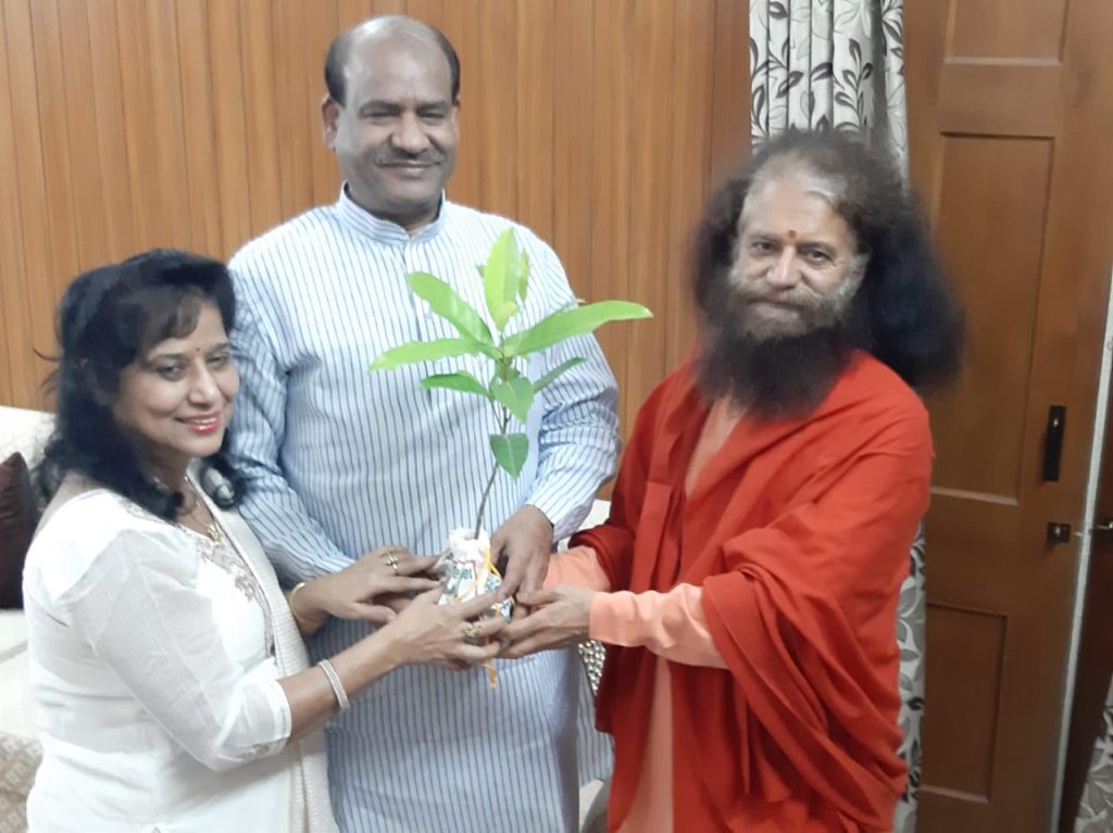 They discussed working together to protect our sacred rivers, especially during the upcoming months of monsoon season. Pujya Swamiji warmly invited him home to Parmarth Niketan, on the banks of Holy Maa Ganga and in the lap of the Himalayas and gave both him and his wife, Dr Amita Birlaji, a sacred Rudraksha sapling.