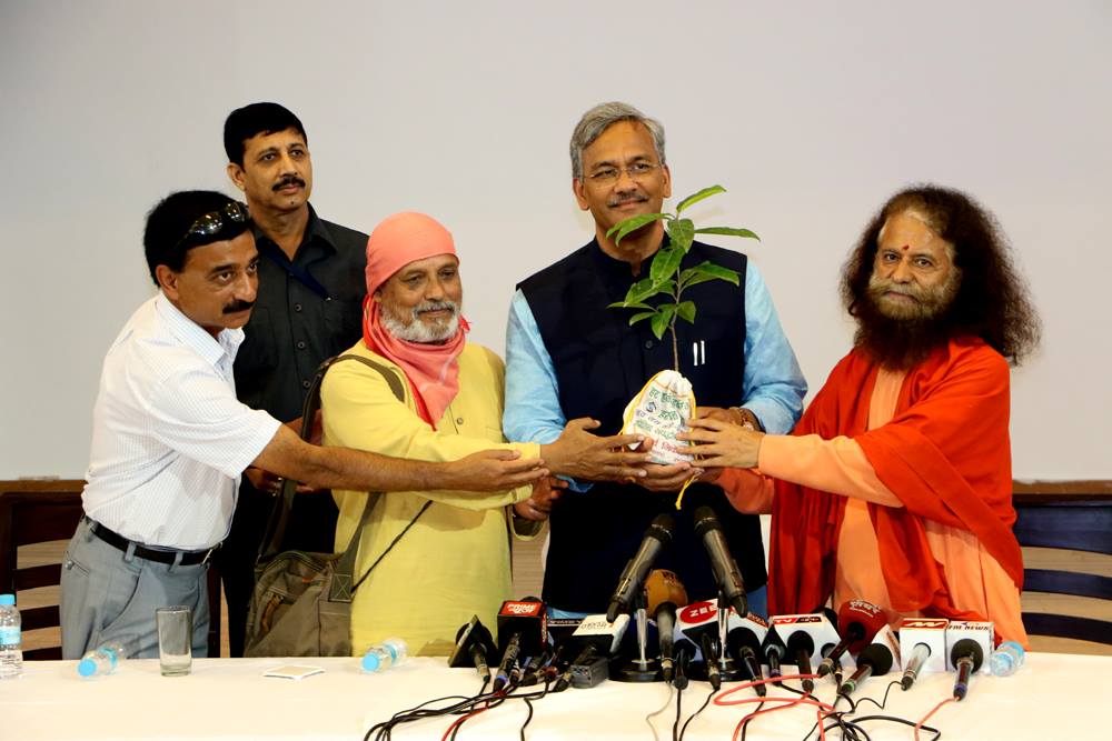 Pujya Swamiji offered a beautiful Rudraksha sapling to Hon’ble CM, Dr Anil Joshiji and Col HS Ranaji joined him, as a symbol of their clean and green commitment to work together for the preservation of the Himalayas.