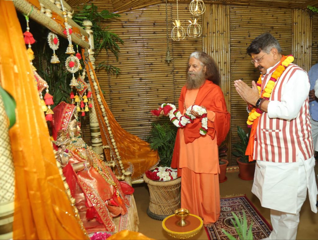 Honorable Cabinet Minister, Madhya Pradesh Government, Shri Kailash Vijayvargiya ji, visited Parmarth Niketan, seeking blessings from HH Pujya Swami Chidanand Saraswatiji – Muniji and initiating discussions on various contemporary issues, including starting the Narmada Aarti at Omkareshwar. Emphasizing on environmental conservation, Pujya Swamiji urged collective efforts during the upcoming Kanwar Mela for waste management. He highlighted the importance of preserving traditional practices for environmental protection. Pujya Swamiji also presented a divine Rudraksha plant to Shri Vijayvargiya ji, Mayor Anita Mamgain ji.