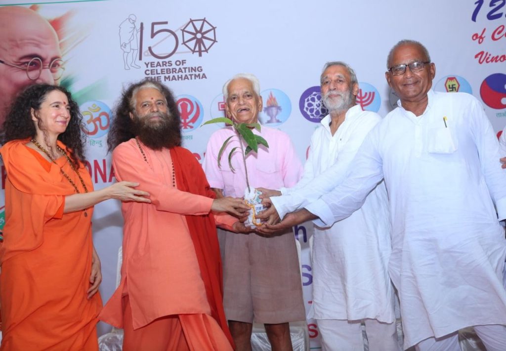 11 SEPTEMBER 2019 DELHI/RISHIKESH: On the 125th anniversary of the birth of famed Gandhian thinker Acharya Vinoba Bhaveji, HH Pujya Swami Chidanand Saraswatiji, President and Spiritual Leader of Parmarth Niketan, inaugurated a seven-day International Integration & Communal Harmony Youth Camp in his honor at the Gandhi Ashram, Kingsway Camp, New Delhi recently, gathering such notable Gandhian-thought luminaries as Dr SN Subba Raoji, now 91 and founder in 1971 of India’s original National Youth Project; Harijan Sevak Sangh’s President, Prof. Dr. Sankar Sanyalji; Divine Shakti Foundation President, Pujya Sadhvi Bhagawati Saraswatiji; Ganga Action Parivar (GAP)’s Ganga Nandini Tripathiji and other notable persons whose ties with and continued fostering of the principles of The Father of the Nation, Mahatma Gandhi, form the foundation of the camp’s program.