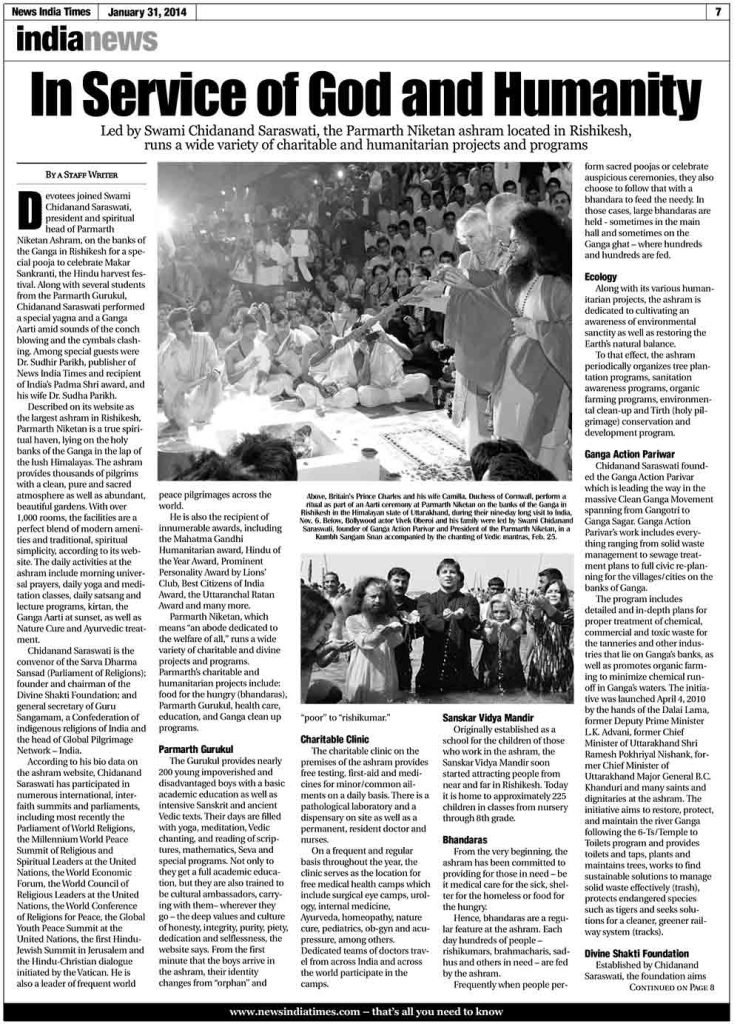 Covering Parmarth and its numerous charitable activities, including the Parmarth Gurukul, free medical clinic, bhandaras, ecological efforts, schools and more.