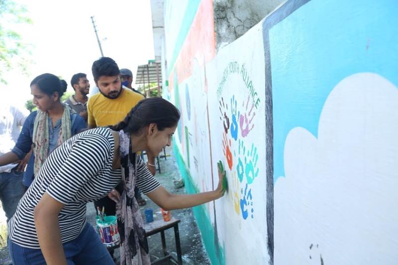 If you could say it in words, there would be no reason to paint. So, in painted words our incredible Parmarth Youth Alliance – with the inspiration and blessing of Global Interfaith WASH Alliance Co-Founder and Chair, HH Pujya Swami Chidanand Saraswatiji – added their inspiring thoughts to a mural painting on the wall of Government Primary School (GPS) Garhi Hisarpur. The team also painted the wall with their hand impressions, replicating our PYA logo. It was such a divine gift, being able to watch our youth and youth leaders embellishing the canvas with motivational stories, beautiful designs and insightful prose.