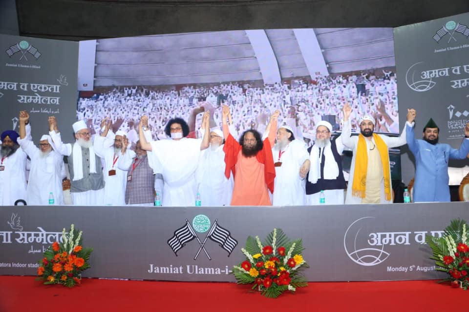 Pujya Swami Chidanand Saraswatiji, President, Parmarth Niketan, joined Maulana Mahmood Madaniji, Secretary General, Jamiat Ulama I Hind, at the Talkatora Stadium admist Maulana Arshad Madani, President, Jamiat Ulema-e-Hind, Maulana Mohammad Usman Mansoorpuri, President, JUH with thousands of members of their institutions. Gracing the closing interfaith panel were also India’s Revered Interfaith leaders such as: Ven Lama Lobzang, President, International Buddhist Confederation, Archbishop of Delhi, Dr Anil Cuoto, Acharya Lokesh Muniji, Jain Monk, Sufi Salman Chisthyji of the Ajmer Dargah Sharif, Giani Ranjit Singhji, Chief Granthi, Bangla Saheb Gurudwara Delhi and many other prominent leaders of the Islam Tradition.
