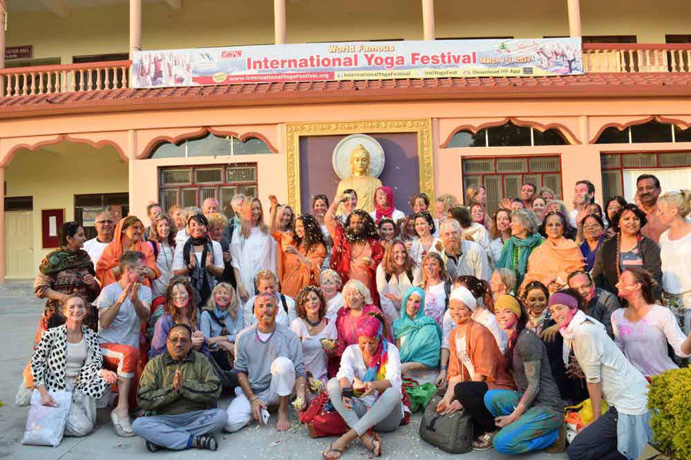 Kia Miller and Tommy Rosen brought their group of forty students to the celebrations and were filled with love, peace and joy by their special Holi visit. They joined Pujya Swamiji in a special water blessing ceremony, where they applied natural colour to the globe, and offered holy waters of the River Ganga on top of the world as a pledge and a prayer for people from every part of the world to save water and protect our environment.