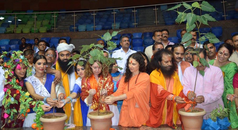 The first ever International Green Raksha Bandhan was held at Talkatora Stadium, Delhi. It was conceived and led by Mananiya Indresh Kumarji, National Executive Member of RSS, and HH Pujya Swami Chidanand Saraswatiji. The theme of the celebration was World Peace & Preservation and Protection of the Environment, organized jointly by DSF and FANS. More than 100 groups with participants from more than 40 countries participated.