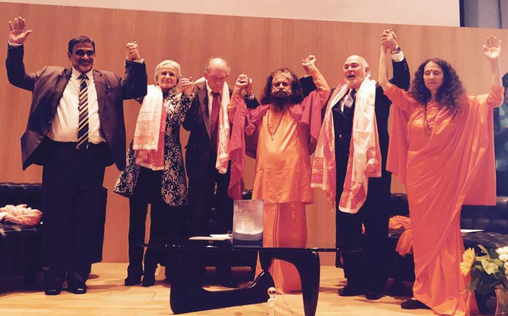 An inspiring pledge, led by HH Pujya Swami Chidanand Saraswatiji – Munijiji and Sadhvi Bhagawati Saraswatiji, took place at the International Peace Palace of the Hague in Netherlands with the Mr. Venu Rajamony ji, Ambassador of India to Netherlands and former Press Secy to the President of India, and Mr. Jonathan Granoff, President of the Global Security Institute, New York, USA as well as many other eminent leaders and heads of businesses and industries.