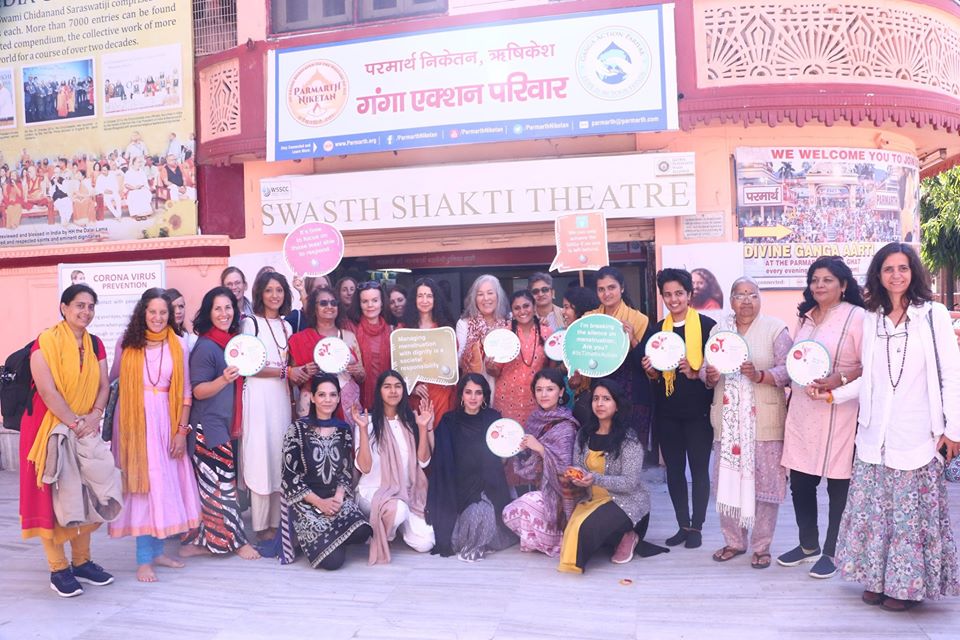 Stopping first at the Swasth Shakti Theater, created in partnership with GIWA and the Water Supply & Sanitation Collaborative Council (WSSCC), at Parmarth Niketan, Pujya Swami Chidanand Saraswatiji – Muniji, Sadhvi Bhagawati Saraswati and the women of the hour pledged to raise awareness on Menstrual Hygiene Management, ending Child Marriage and Leaving No One Behind, issues that Pujya Swamiji and Sadhviji have long been passionate about in their tireless efforts to protect and empower women.