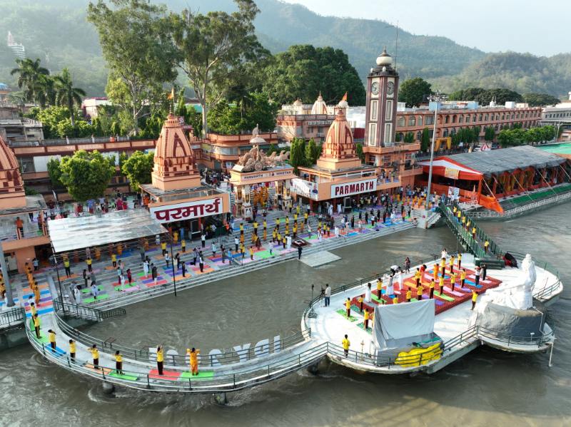 अन्तर्राष्ट्रीय योग दिवस-2023 का दिव्य और भव्य आयोजन परमार्थ निकेतन गंगा तट पर परमार्थ निकेतन के अध्यक्ष स्वामी चिदानन्द सरस्वती जी, कथा वाचक गुरूमाँ चैतन्य मीरा जी, सोशल बिहेवियर चेंज स्पेशलिस्ट यूनिसेफ इंडिया सुश्री शालिनी प्रसाद, और वॉश नोडल यूनिसेफ इंडिया श्री गोपाल बंसल जी के पावन सान्निध्य में अनेक गुरूकुलों के विद्यार्थियों, आचार्यों, देश-विदेश से आये पर्यटकों ने सहभाग कर योग प्रोटोकाॅल का अनुकरण किया।
