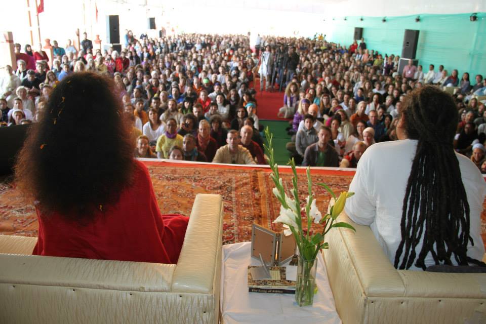 These intense classes were followed by a thought-provoking and intense satsang with Shri Mooji, originally of Jamaica and now a resident of Portugal. Mooji addressed the depths of the Advaita Vedanta school of philosophy by coaxing the audience to go deeply within themselves and question “Who is the one asking this question? Who is the one with the problem? Whose problem is it?” He explained to the listeners that “I am not so interested in the question as in the questioner…..Something very deep has brought you to this holy land of Rishikesh to this International Yoga Festival and it is that depth of experience that we want to make sure you receive, not only things you could read in books.”