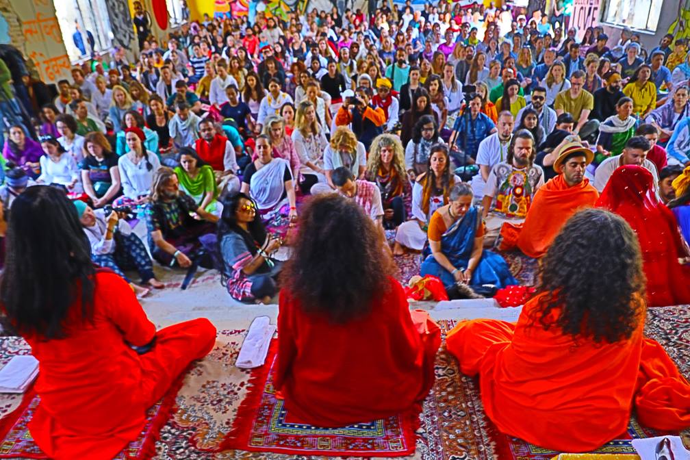 Following lunch, a relaxing Yoga Nidra class was led by Sadhvi Abha Saraswati, while spiritual guide Maa Gyaan Suveera led the third installment of Reiki Healing Initiation. HS Arun unpacked the body-mind connection so sacred to our practice in “Untwist the Twist to Unwind the Mind”. On the Yoga Ghat, Saul David Raye led “Prana Shakti: Soul Sadhana”, while those at the Sacred Sound Stage learned from Joseph Schmidlin about “The Homeopathics of Sound”.
