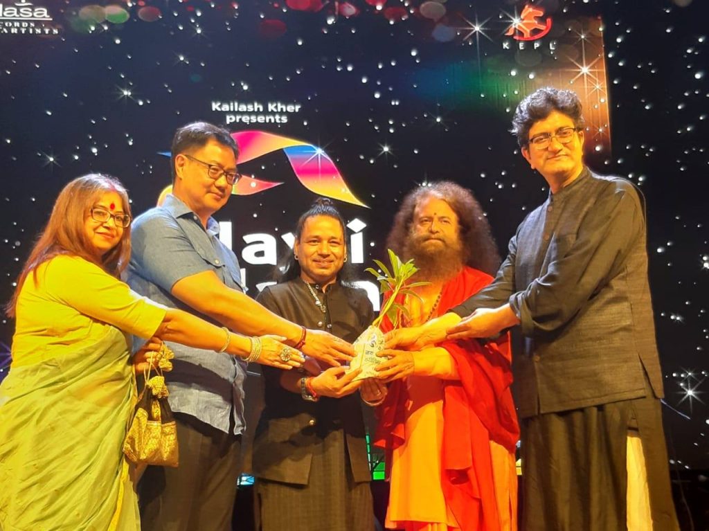 Pujya Swamiji joined the Honourable Minister of State for Youth Affairs,Government of India Kiren Rijijuji, and a bevy of Bollywood celebrities that included Chairman of the Central Board of Film Certification Prasoon Joshiji and many other eminent personalities to usher-in renowned Sufi Artist Kailash Kherji’s 46th birthday at Mumbai’s at the third-annual Nayii Udaan music festival – and to help reveal details of the singer’s most-ambitious project yet: The Kailash Kher Academy of Learning Arts (KKALA).