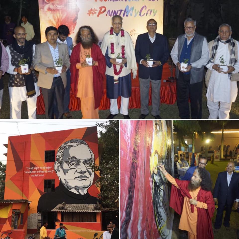 The Kumbh Kala Mahotsav (#KumbhArtFest) launched to recognise, give credit and offer gratitude to all the artists who have worked under the Mela Admin’s Paint My City’ campaign. Fest continues till 7th Dec and in the next 4 days the iconic Indira Bhavan will be the canvas for the artists brush. Please join, witness and celebrate this spirit of Kala Sangam at Sangam!