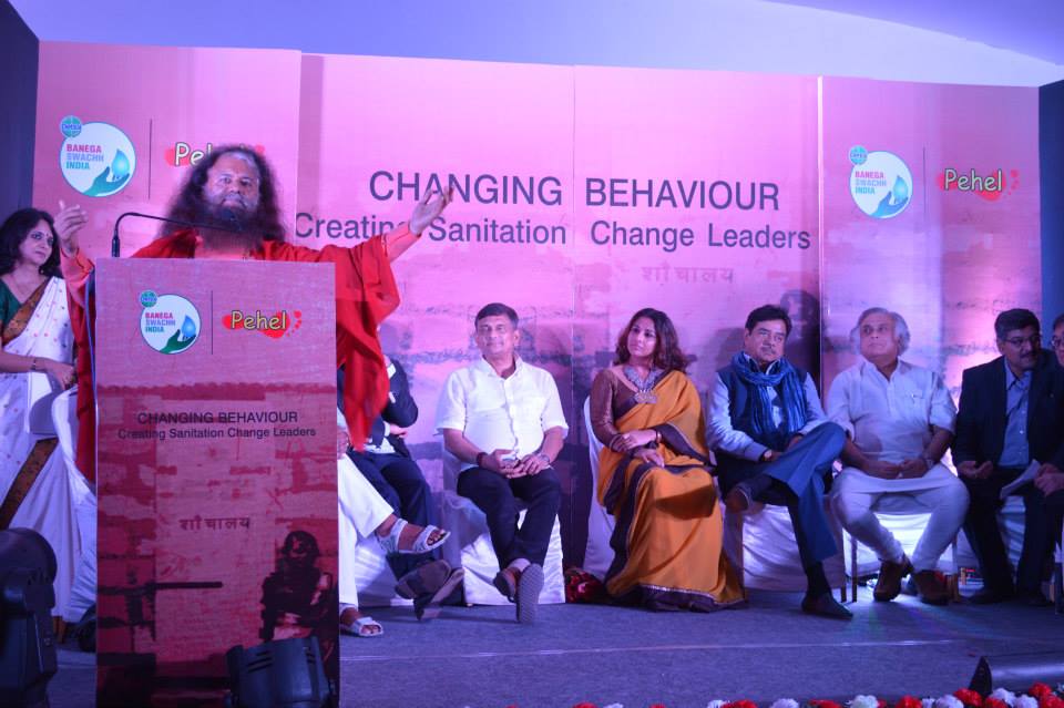 The official launching of the campaign in Patna, Bihar, was graced and blessed by Pujya Swamiji, along with the presence of esteemed dignitaries Smt Vidya Balanji, famous Bollywood actress and ambassador for the campaign, Shri Jairam Rameshji, Hon’ble Former Union Minister of Drinking Water and Sanitation, Shri Sandeep Gupta, Dainik Jagran Group Executive Editor and Director, Shri Anand Madhabji, Chief Executive Officer- Jagran Pehel, Shri Nitish Kapoorji, Regional Director Reckitt and Benckiser (RB) South Asia, Mr. Shatrughan Sinhaji, veteran actor and politician, Mr. Jack Sim, Founder-President of World Toilet Organization, Shri Radhashyam Gomlaji, Gram Pradhan of ODF free, model village of Gomla, Haryana, and many others.