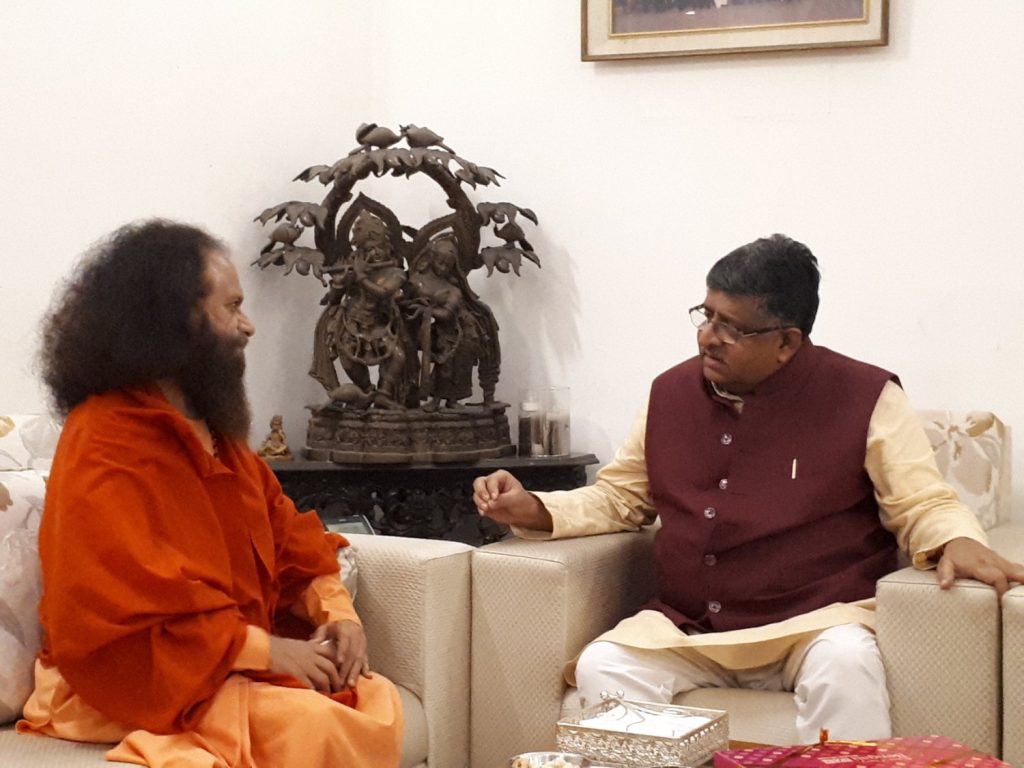 Pujya Swami Chidanand Saraswatiji and Hon’ble Shri Ravi Shankar Prasad, Union Minister of Law and Justice, met in Delhi to discuss protecting the National River Ganga by strong legislative and policy framework. During their discussion, Pujya Swamiji shared several suggestions on encouraged the implementation of laws that have already been passed to protect our natural environment. He said by raising awareness, engaging and educating people about these laws they could be better implemented and enforced.