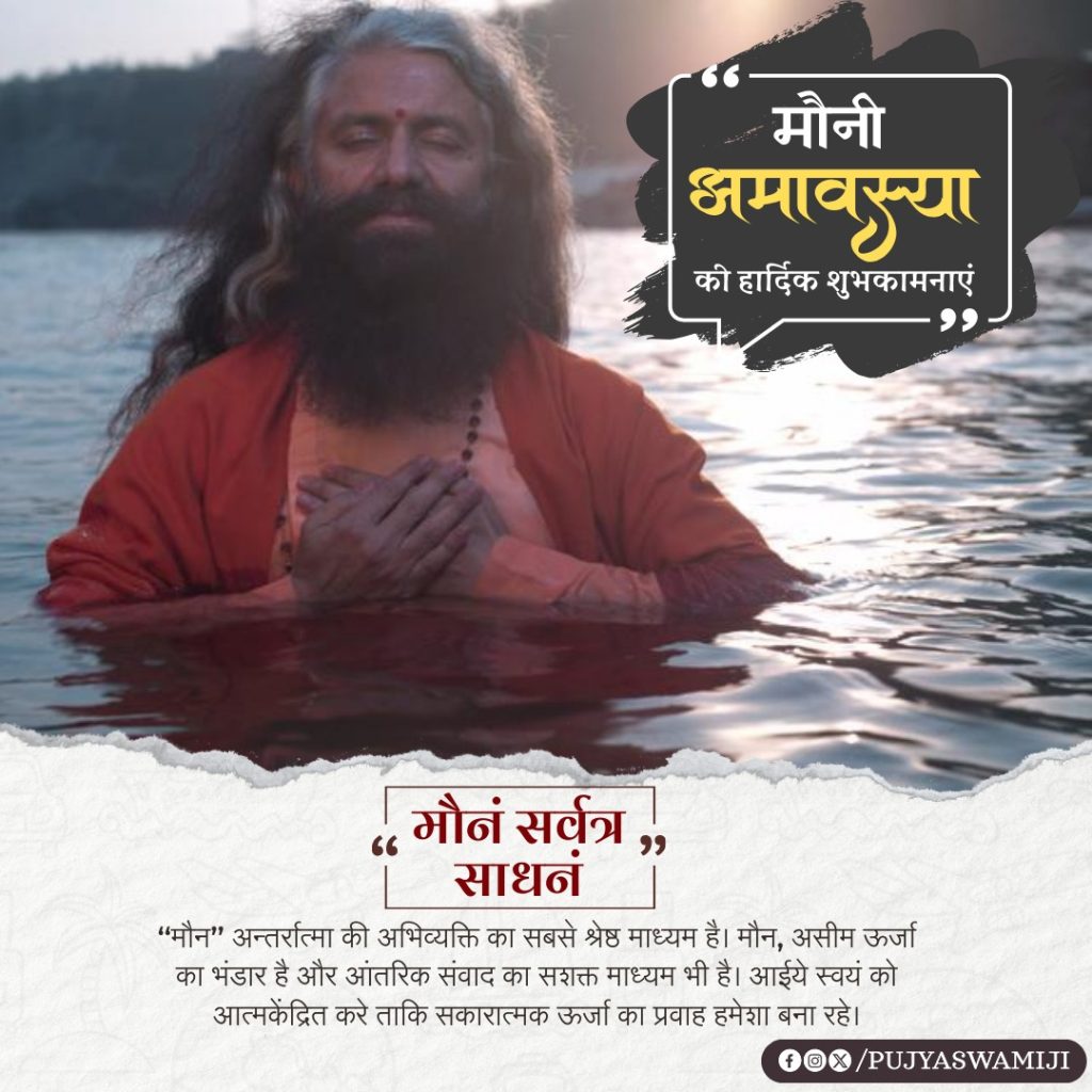 Pujya Swami Ji Maharaj extends blessings for Mauni Amavasya, a day devoted to Lord Shiva worship and embracing conscious silence, known as maun. Maun is not just the silence of our speech but also the practice of withdrawal of our senses from the outer world into our inner world. Let us celebrate this occasion by taking some time even if it’s 20 mins, 2 hours or the whole day, however much you are able to commit to, to be truly silent —disconnecting from mobile devices, avoiding social media, and refraining from non-verbal communication. By doing so, we may realize life’s continuity even in silence. Pujya Swamiji encourages spending time in nature to appreciate life’s beauty. The practice of maun holds transformative power, and perhaps it could inspire a lasting embrace of silence in our lives, echoing Pujya Swamiji’s example.