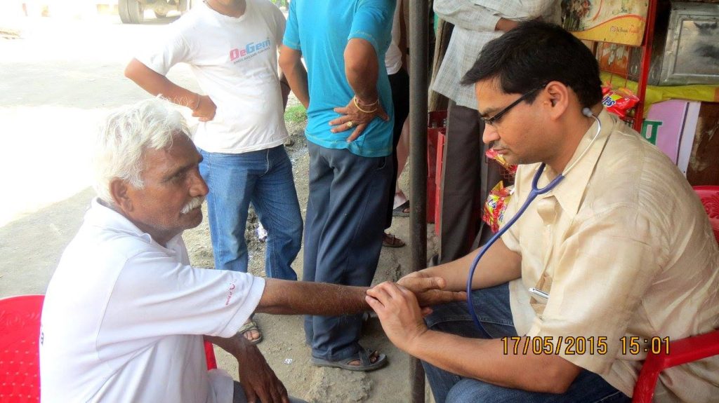 On Sunday 17 May the medical volunteer team, including Neurosurgeon Dr. Shweta Kedia and Neurointensivist Keshav Goyal from AIIMS Hospital, New Delhi, travelled to a new village called Diyogi about 45 km from Parmarth.
