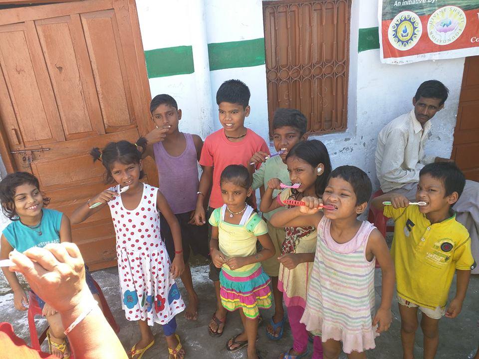 Last month the Divine Shakti Foundation’s free medical care team travelled to government primary school Sarvhara Nagar in Kali Ki Dhal, less than an hour from Parmarth Niketan. On arrival, children and mothers were already eagerly waiting, so the camp set up quickly. More than 140 patients were seen, within the age range of 6 months to 86 years, and the following conditions were treated: common cold, fever, hypotension, gastric, diarrhea, high blood pressure, diabetes, ear & eye infections as well as eczema.