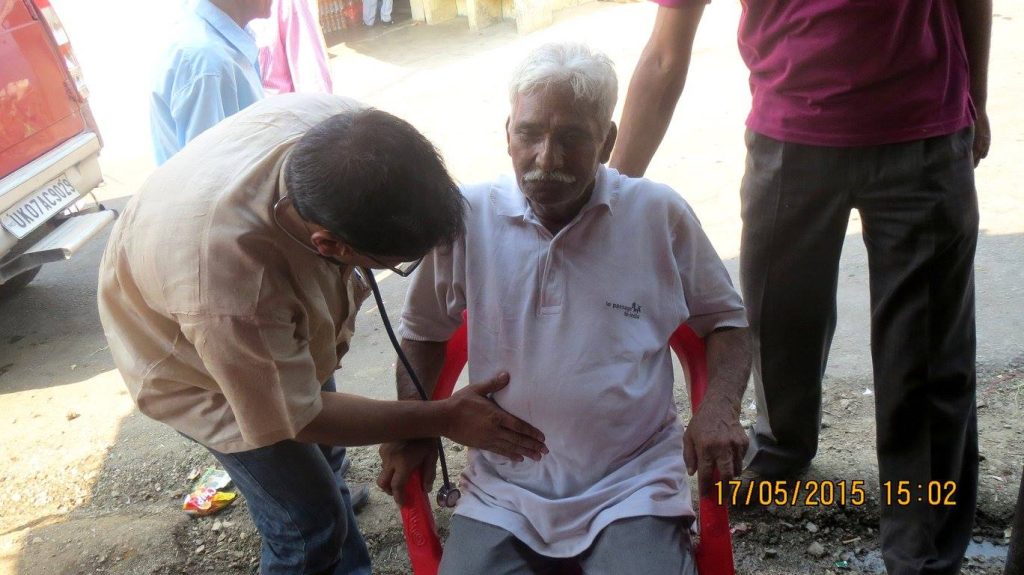 An impromptu medical camp was held at Khanda Dal, where Parmarth and DSF volunteers had stopped by chance to ask directions. The camp was set up in a small shop front and patients were consulted in the best possible way.