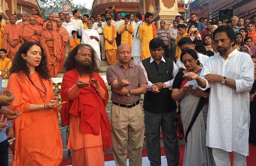 They also joined for the divine Ganga Aarti ceremony and were honoured by Pujya Swamiji with a sacred Rudraksha sapling for the incredible work that they were doing to bring Hon’ble Prime Minister Repsected Shri Narendra Modiji’s vision for Yoga to fruition.