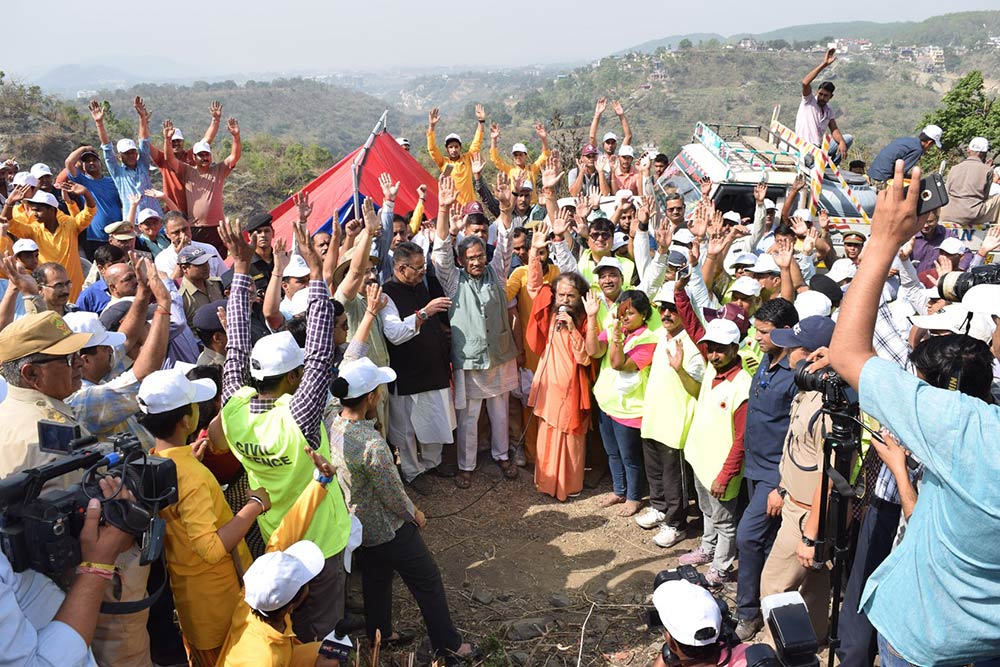 Pujya Swami Chidanand Saraswatiji, who has blessed the mission from it’s inception, graced the occasion offering His appreciation and unconditional support to the Hon’ble Chief Minister for his green leadership and his commitment to the restoration of water bodies in Uttarakhand. He also inspired all the volunteers and government officials by saying, “आज गड्ढों से गंगा की यात्रा, जल से जीवन की यात्रा, संकल्प से सिद्धि की यात्रा, रिस्पना से ऋषिपर्णा की यात्रा, आइये जोड़े रिश्ता रिस्पना से.” He shared that volunteers weren’t just digging pits but digging spaces in which the potential for a cleaner, greener future lies. He added, “Desh ki liye Ganga hai, leken Dehradun ki liye Rishiparna hi Ganga hai.”
