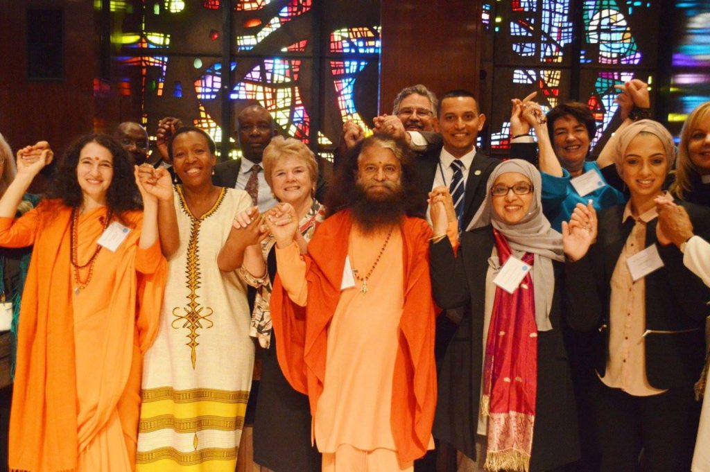 Pujya Swami Chidanand Saraswati also led a pledge of solidarity in which all the leaders stood and held hands as he spoke, “We are united by love for humanity and our commitment to serve humanity. Together we will eradicate poverty. Together we will ensure that our global family has access to water, sanitation, hygiene, health and education. Together we will have faith, and together we will BE faith. Together the world will change.”