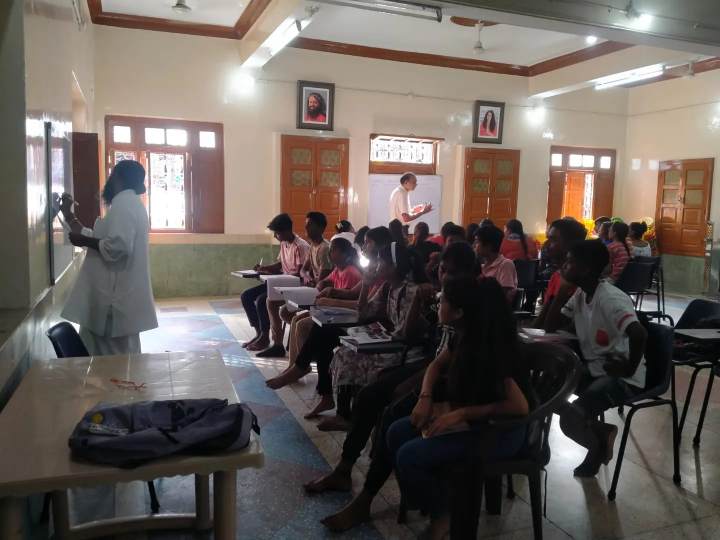 SVM – a study circle where students from Class 1 to Class 10 attend sessions and train for competitive exams – is maintained by Parmarth Niketan and Divine Shakti Foundation with the blessings and inspiration of Param Pujya Swami Chidanand Saraswatiji and Sadhvi Bhagawati Saraswatiji.
