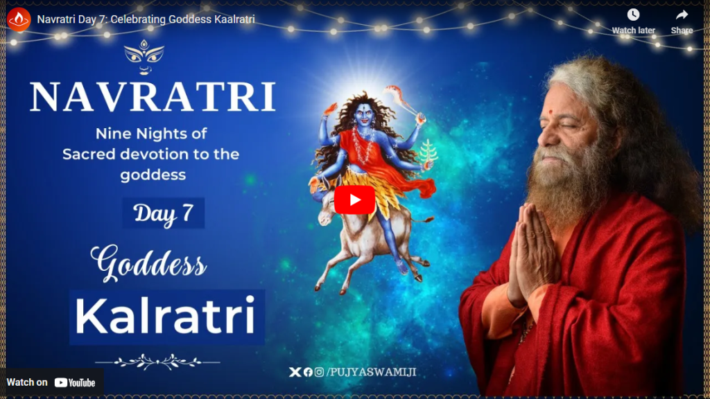 On this sacred seventh day of Navratri, Pujya Swamiji blesses us with his divine message. He offers a beautiful prayer dedicated to Maa, inspiring us to remember the importance of honoring, revering, and serving the divine feminine in all her manifestations. He reminds us that the very existence of all creation is a manifestation of Shakti, and during Navratri, we must offer everything back to the Divine Mother, surrendering ourselves to her, and allowing her grace to flow through our lives and hearts.