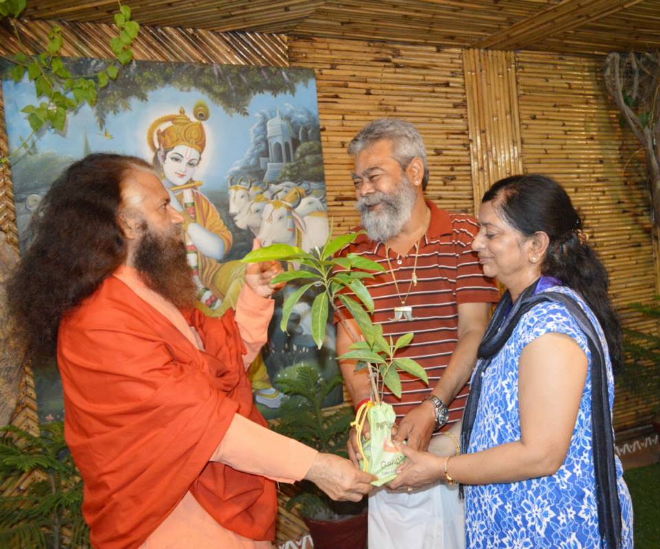 Pujya Swamiji also inspired him to serve as a Green Ganga Ambassador and utilize his teremendous Media Shakti to inspire, engage and encourage the masses to stop polluting their sacred water bodies and start living green, eco-friendly lifestyles in harmony with Mother Nature. Pujya Swamiji blessed him with a sacred Rudraksha plant as a symbol of his pledge to channel his Media Social Responsibility towards these causes of protecting and preserving our planet and our precious natural resources.